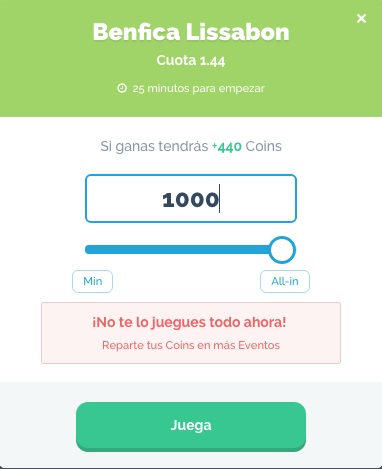 Cuando te quedes sin puntos, diariamente se te recargará 4.000 Coins para que puedas apostar.